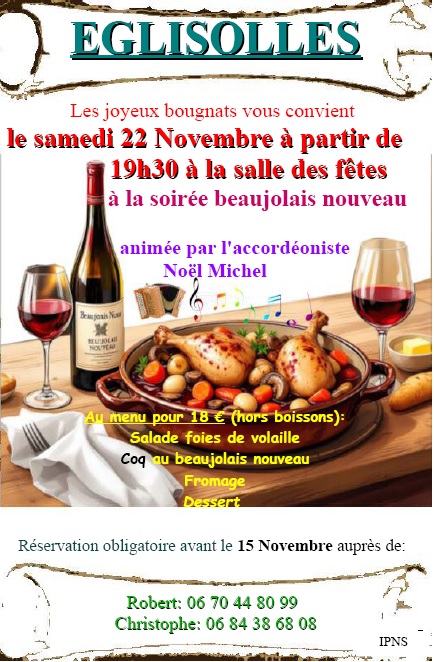 le samedi 22 Novembre à partir de 19h30 à la salle des fêtes